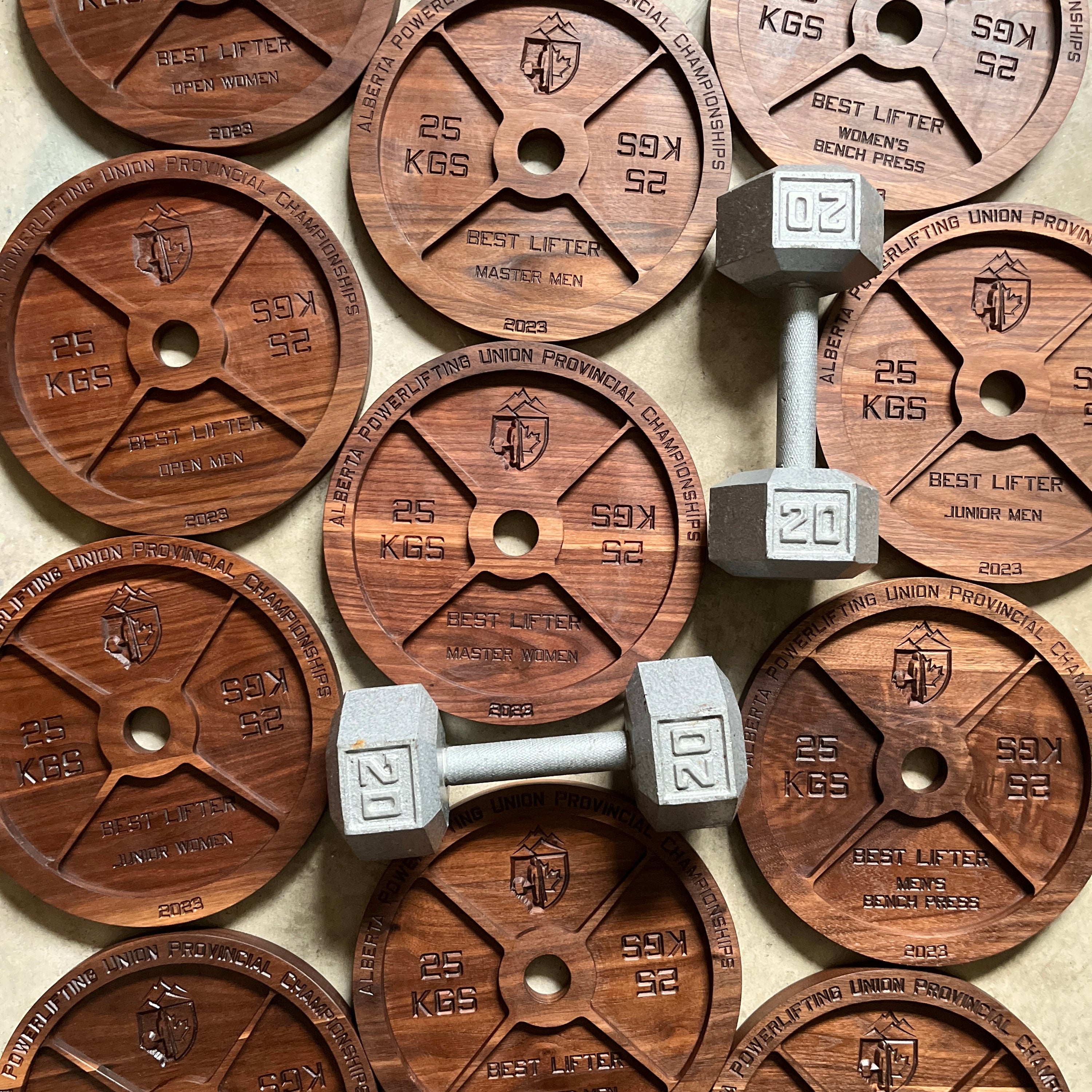 Custom 14" Barbell Plate Dark Walnut Catchall Tray