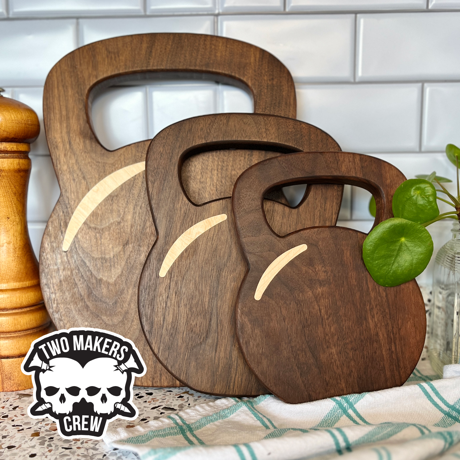 The KettleBell Carver - Dark Walnut / Maple inlay Cutting / Serving / Charcuterie board