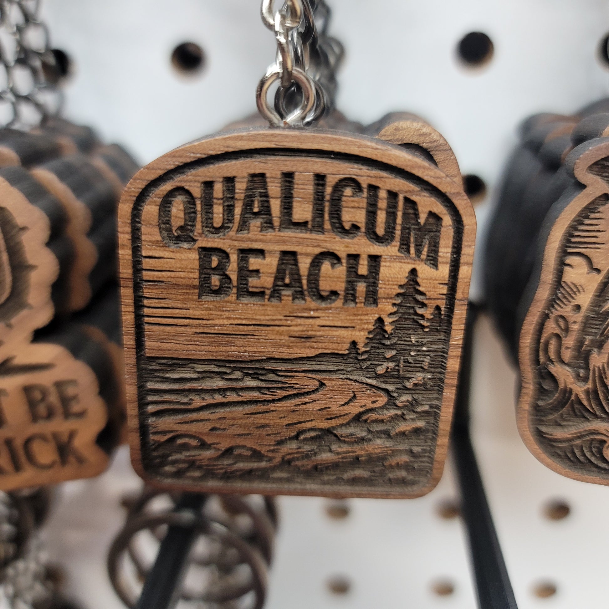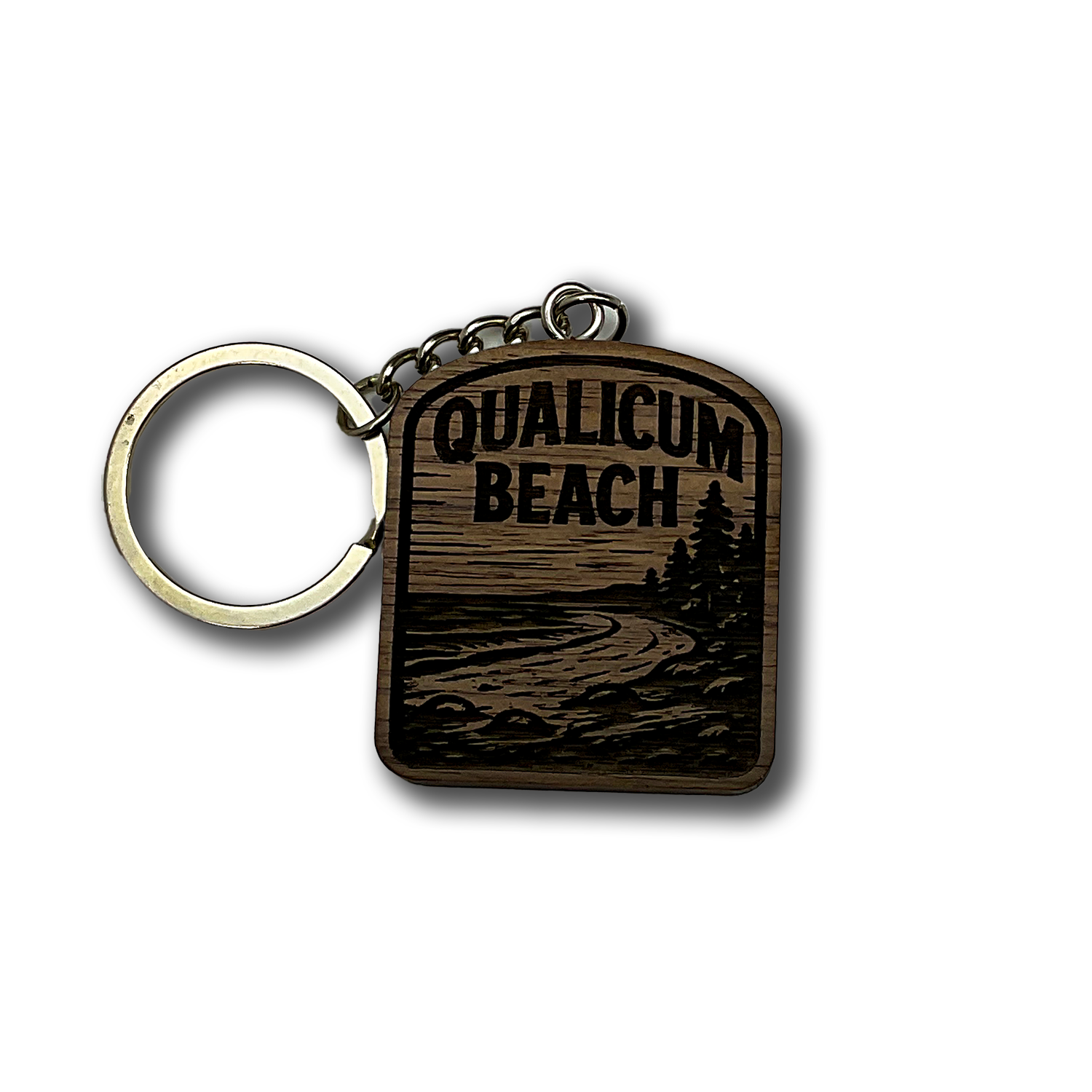 Handcrafted from solid walnut, these unique keychains are designed and made in-house on Vancouver Island. Each keychain averages 2–3 inches in size, featuring art inspired by the West Coast. Durable, lightweight, and engraved for a clean, lasting finish.