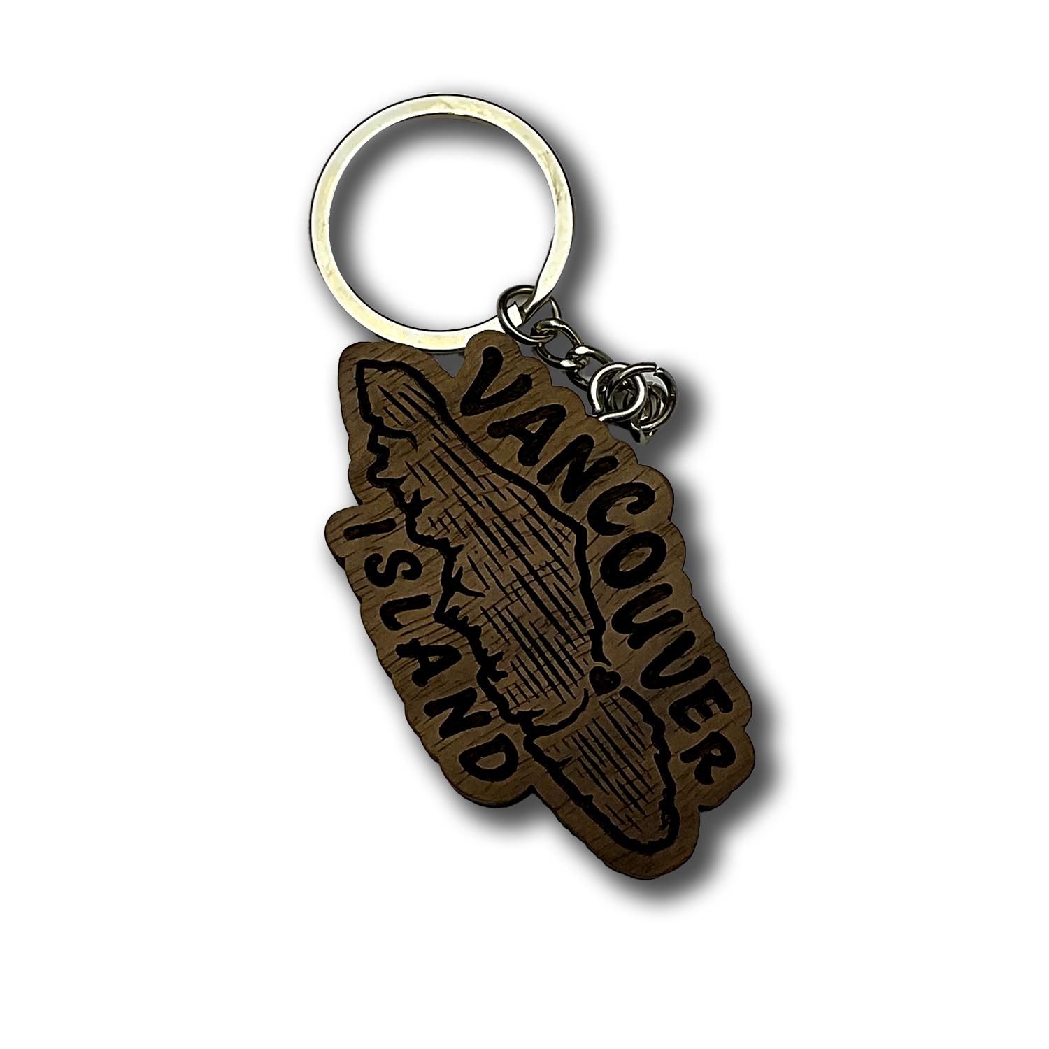 Handcrafted from solid walnut, these unique keychains are designed and made in-house on Vancouver Island. Each keychain averages 2–3 inches in size, featuring art inspired by the West Coast. Durable, lightweight, and engraved for a clean, lasting finish.